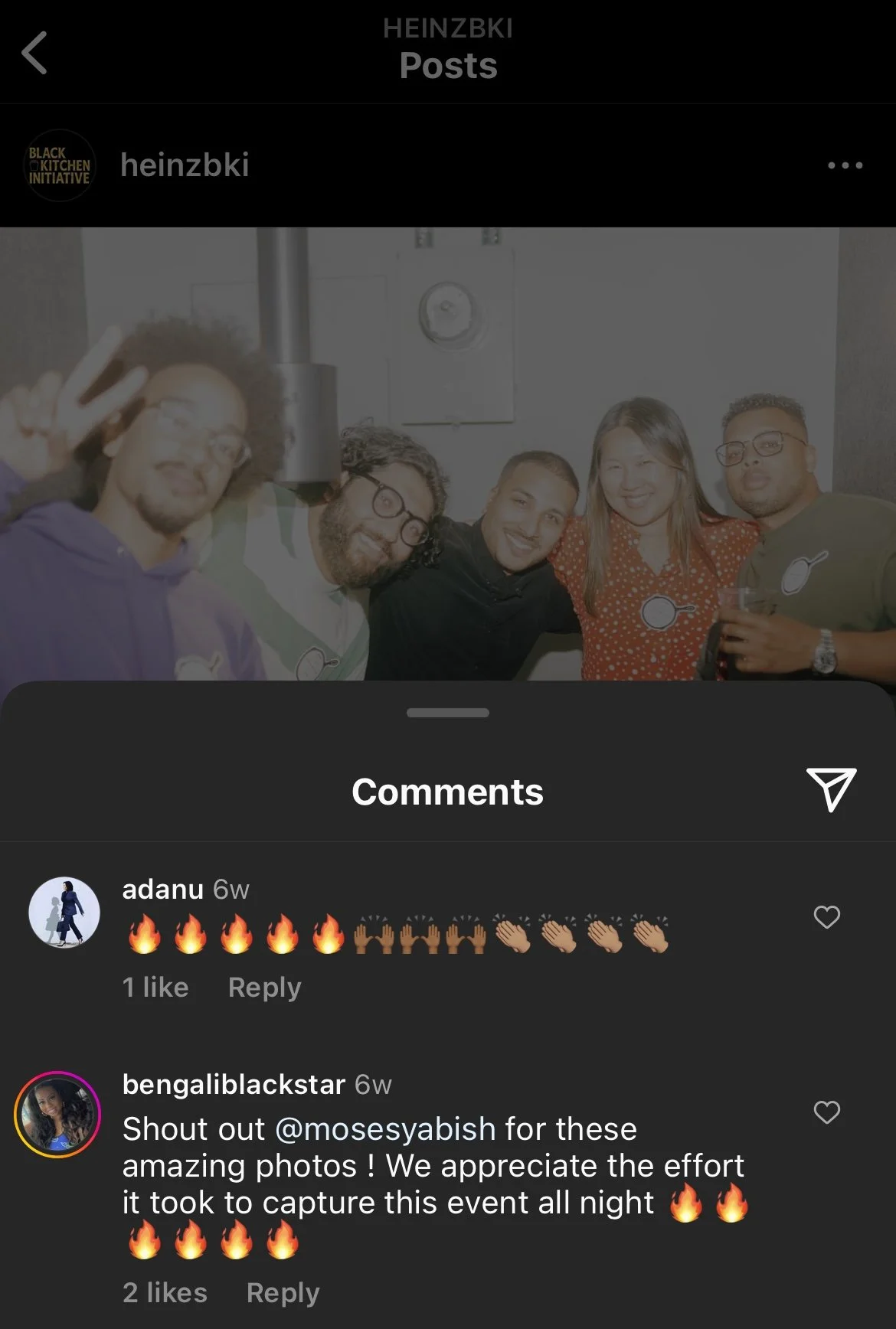 For this project I got to team up with the Heinz team at Wieden + Kennedy. The task at hand was to create content surrounding the wrap party for Heinz Black Kitchen Series. I was tasked with capturing photos of the event and directing them for social media use on Instagram. This work aimed to share and celebrate many of the great things happening in the Black culinary world and topics being discussed on the Innovators podcast. Heinz collaborated with the LEE Initiative, Southern Restaurants for Racial Justice (SRRJ), and numerous Black-owned restaurants throughout the country. The focus of the podcast was to highlight Black-owned restaurants across the country and how Black cuisine, Black culture, and Black businesses have created legacies and have made their mark on the best parts of America. This initiative by Heinz connected Black restaurant owners to tangible resources that support the longevity and health of their businesses.